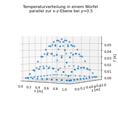3d-Wärmeleitung stationär mit Dirichlet-Randbedingungen in den Rändern.
